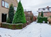 De achtertuin is gelegen op het zuidoosten en fraai aangelegd met bestrating en beplante borders. Tevens is er een praktische achterom aanwezig.
