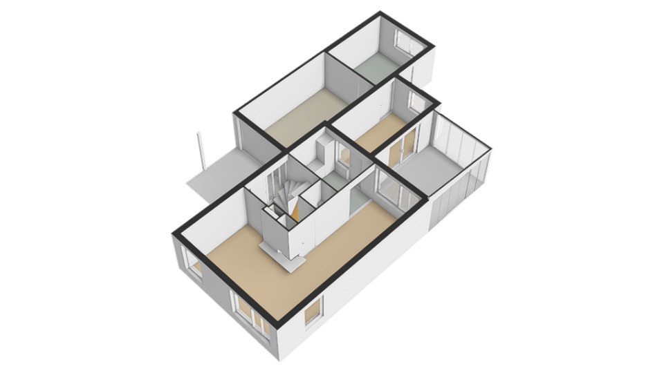 Aansluitend bevindt zich de bijkeuken van circa 10,5 m² en de slaapkamer/kantoorruimte. Deze ruimten zijn multifunctioneel en kunnen desgewenst ook dienen als werk-, hobby- of speelkamer.