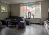 Via de hal komt u in de woonkamer, welke straatgericht is. De L-vormige woonkamer van circa 27 m² is afgewerkt met een laminaat vloer en is, indien gewenst, op te delen in een woon- en eetgedeelte.