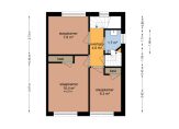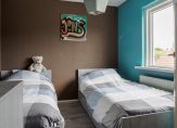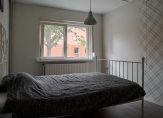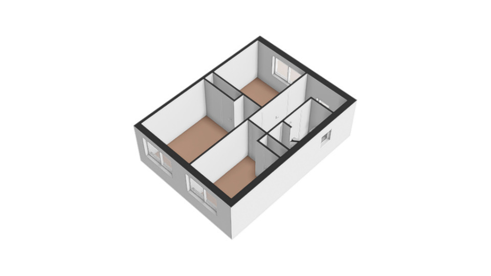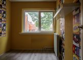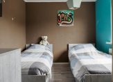 Overloop met drie slaapkamers en de badkamer. De slaapkamers meten respectievelijk 10, 8 en 6 m² en zijn allen voorzien van een laminaatvloer en rolluiken. Twee slaapkamers zijn tevens voorzien van een vaste kastruimte.