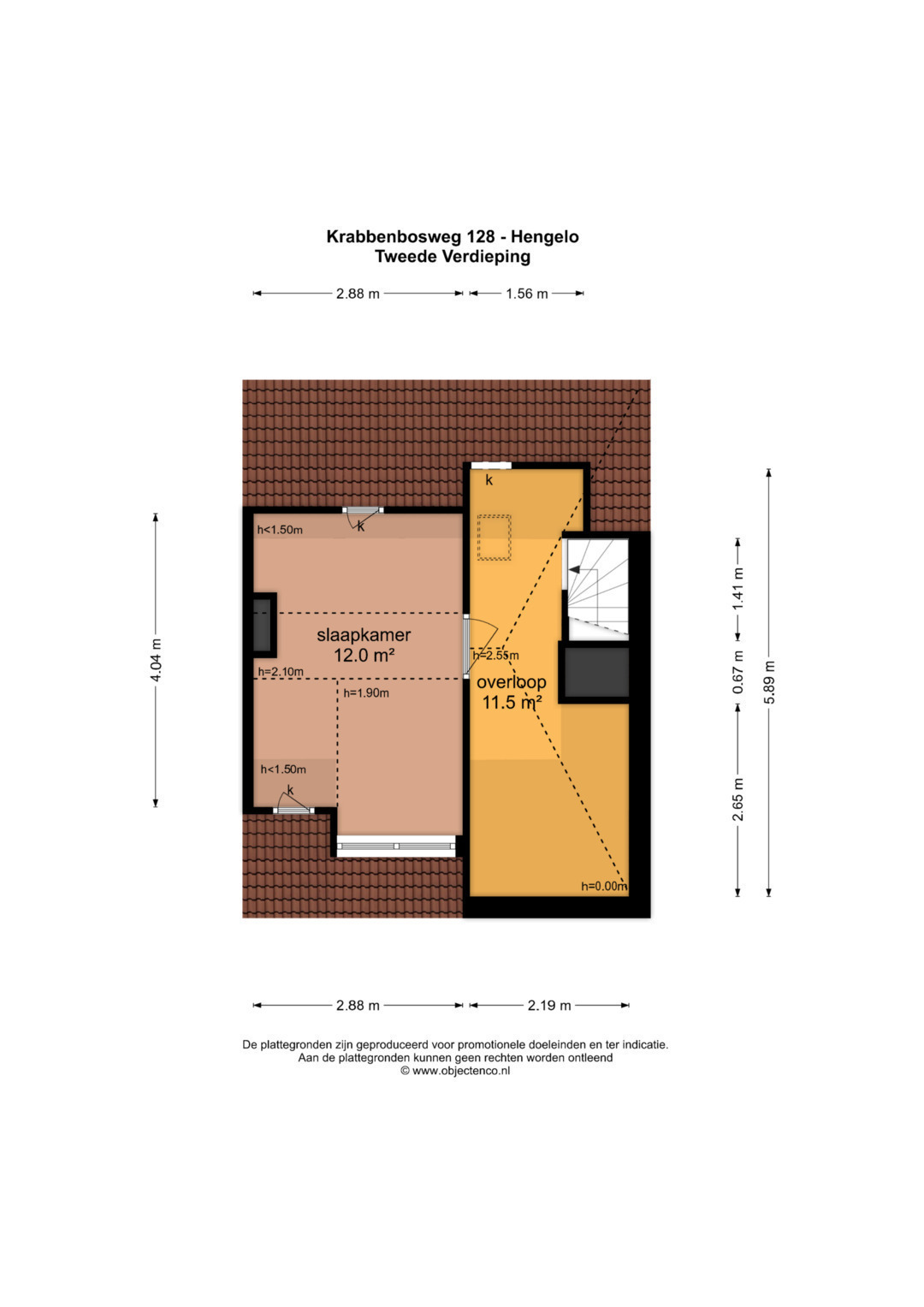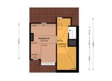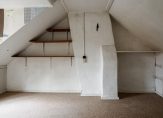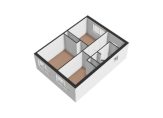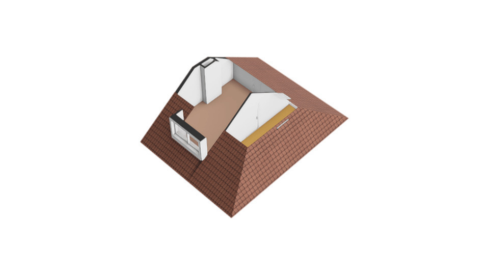 De tweede verdieping is bereikbaar via een vaste trap. Hier bevindt zich een overloop met dakraam en bergruimte, evenals een slaapkamer met dakkapel. De slaapkamer beschikt daarnaast over knieschotten, wat extra opbergruimte biedt onder het schuine dak.