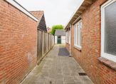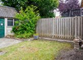 De achtertuin is op het noordwesten gesitueerd en aangelegd met bestrating en een gazon. Achter in de tuin vinden we nog een vrijstaande stenen berging met een oppervlakte van circa 17 m².