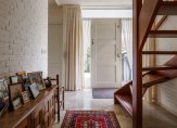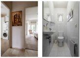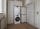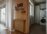 Direct aansluitend aan de keuken bevindt zich de bijkeuken met aansluitingen voor wasmachine en droger, wat bijdraagt aan het gemak van gelijkvloers wonen.
