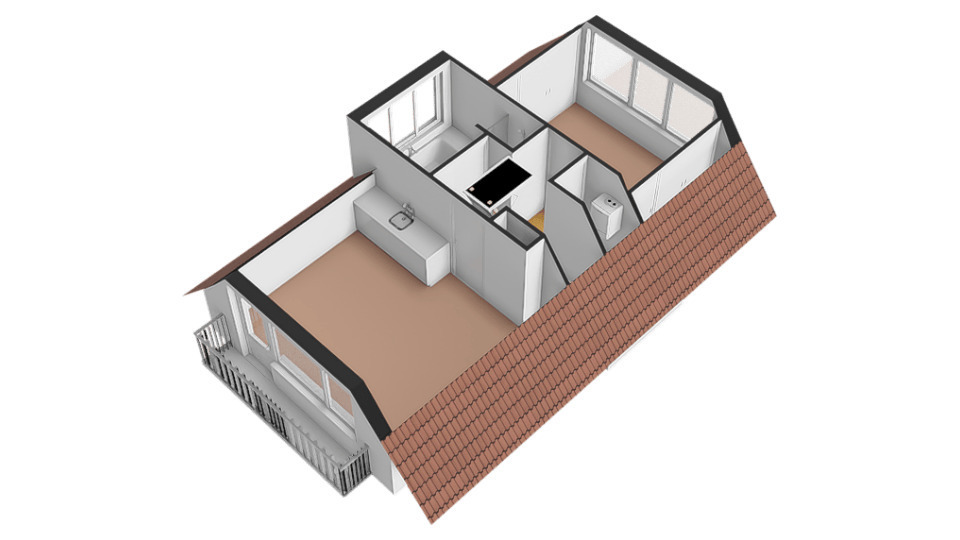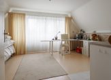 Via de hal bereikt u het kantoor en de slaapkamer. De kantoorruimte is multifunctioneel en uitstekend te gebruiken als hobbyruimte, logeerkamer of chill plek voor de (klein)kinderen.
