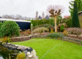 De verzorgd aangelegde achtertuin is gunstig gesitueerd op het zuidwesten, waardoor u hier volop kunt genieten van de middag- en avondzon. De tuin is ingericht met een combinatie van bestrating, borders met beplanting, een gazon en vijver, wat zorgt voor een prettige en groene uitstraling.