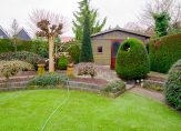 Achter in de tuin bevindt zich een vrijstaande houten berging met een oppervlakte van circa 12 m². De berging is voorzien van elektra en water en biedt ruime mogelijkheden voor het stallen van fietsen, tuingereedschap of het inrichten van een hobbyruimte.