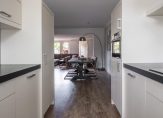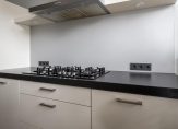 Vanuit de woonkamer is er directe toegang tot de halfopen keuken van 12 m². In tegenstelling tot de meeste woningen in de straat, bevindt de keuken zich aan de voorzijde van de woning. De keuken is voorzien van een moderne inbouwkeuken in lichte kleurstelling, welke is afgewerkt met een granieten aanrechtblad, waarin verwerkt een RVS spoelbak. Als bewoner heeft u de beschikking over de navolgende inbouwapparatuur: afzuigkap, koelkast, vriezer, 5-pits gaskookplaat, combimagnetronoven en vaatwasser.