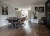 De woon-/eetkamer meet circa 30 m², is voorzien van een PVC vloer en airconditioning. Tevens is er voldoende ruimte voor het plaatsten van een royale zithoek en eetkamertafel met stoelen. De openslaande tuindeuren in de achtergevel zorgen ervoor dat u zowel in het voor- als najaar optimaal kunt genieten van de tuin.