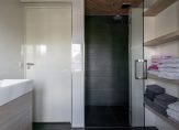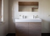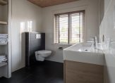 De geheel betegelde badkamer is voorzien van een inloopdouche, dubbele wastafel en een toilet. Ventilatie geschiedt op mechanisch wijze. Ook de badkamer is voorzien van vloerverwarming.