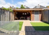 Aangrenzend aan de woning bevindt zich een stenen berging van circa 6 m². Achter in de tuin vinden we een stenen berging van 5 m² met aangrenzend een luxe overkapping met elektra, welke ervoor zorgt dat u volop kunt genieten van de lange zomeravonden!
