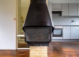 De woonkamer is voorzien van een parketvloer en biedt volop daglicht door de grote raampartijen aan zowel de voorzijde als de achterzijde van de woning. Het geheel meet een oppervlakte van circa 26 m². De woonkamer is voorzien van een sfeervolle houtkachel, die zorgt voor extra warmte en gezelligheid op koude dagen.