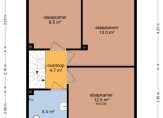 Overloop met drie slaapkamers en de badkamer. De slaapkamers meten afmetingen van respectievelijk 13, 13 en 9 m².