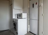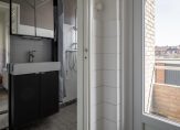 Vanuit de keuken heeft u directe toegang tot de badkamer. De badkamer is uitgerust met een wastafel en douche. De ventilatie geschiedt op natuurlijke wijze.