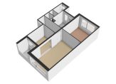 Entree/hal met meterkast, living (opgedeeld in de woon-/eetkamer) keuken, toilet, badkamer en een slaapkamer.