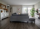 De tuingerichte woonkamer is ruim opgezet en biedt ca. 34 m² woonoppervlak. Dankzij de grote raampartijen en openslaande tuindeuren aan de achterzijde geniet u van veel natuurlijk licht en een fraai uitzicht op de achtertuin. De gehele verdieping is afgewerkt met een strakke pvc-vloer in houtlook, die warmte en een uniforme uitstraling geeft. Voor extra comfort is de woonkamer voorzien van een airconditioning, die zowel verkoeling in de zomer als warmte in de winter biedt.