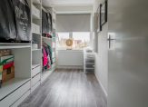 Vanaf de overloop heeft u toegang tot drie slaapkamers en de badkamer. Aan de achterzijde ligt de royale hoofdslaapkamer van ca. 19 m², voorzien van airconditioning. De tweede slaapkamer van ca. 8 m² wordt momenteel gebruikt als kastenkamer, maar kan ook eenvoudig als slaapkamer worden ingericht. De derde slaapkamer van ca. 13,5 m² bevindt zich aan de voorzijde. Alle slaapkamers zijn afgewerkt met een nette pvc-vloer en strak afgewerkte wanden, wat zorgt voor een lichte en verzorgde uitstraling.