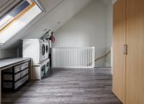 Via een vaste trap bereikt u de royale zolderverdieping, voorzien van een dakkapel aan de achterzijde. Hier vindt u een extra ruime slaapkamer van ca. 20 m² en volop bergruimte. Ook zijn hier de opstelplaats voor de C.V.-ketel, de mechanische ventilatie-unit en de omvormer van de zonnepanelen gesitueerd. Aan de voorzijde zorgt een dakvenster voor extra daglicht.