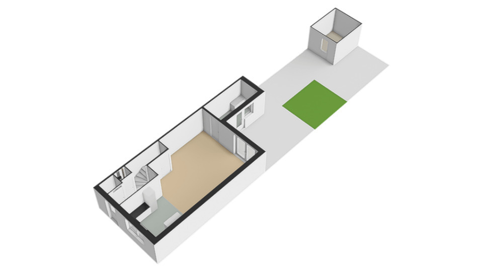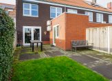 Aansluitend treft u de praktische bijkeuken/tussenhal van ca. 7 m², die direct toegang biedt tot de achtertuin. Ideaal voor extra opbergruimte of het comfortabel ontsluiten van binnen naar buiten.