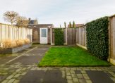 De achtertuin ligt op het oosten en is fraai en onderhoudsvriendelijk aangelegd met moderne sierbestrating, een groen gazon en diverse kleurrijke plantenborders. Via de openslaande tuindeuren en een handige loopdeur loopt u zo vanuit de woning de tuin in. Achterin de tuin vindt u een houten berging met elektra-aansluiting.