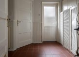 Vanuit de keuken is er directe toegang tot de bijkeuken met onder meer de opstelplaats voor de Cv-ketel en de aansluiting voor de wasmachine en wasdroger. U heeft van hieruit toegang tot het toilet evenals de achtertuin.