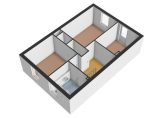De geheel betegelde badkamer van circa 5 m² is gelegen aan de voorzijde van de woning en voorzien van een douche, wastafel en een toilet. Ventilatie geschiedt op natuurlijke wijze en voor de verwarming is een design radiator aanwezig.