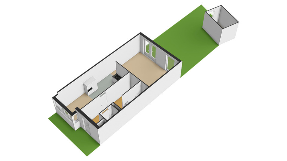 De lichte, tuingerichte woonkamer van circa 23 m² is een heerlijke plek om te ontspannen. Grote raampartijen zorgen voor veel daglicht en een fijn contact met de achtertuin. Via de openslaande tuindeuren in de achtergevel loop je zo de onderhoudsvriendelijke tuin in, wat wonen hier extra comfortabel en uitnodigend maakt.