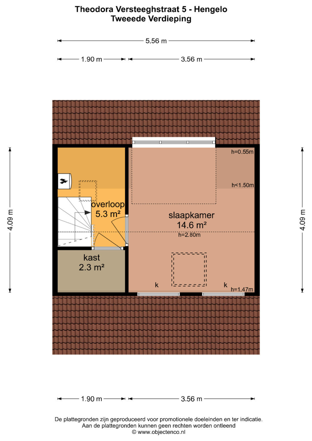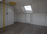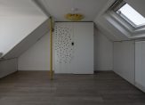 Op de overloop is een grote vaste inloopkast geplaatst, tevens is hier de opstelplaats van de Cv-ketel. De slaapkamer meet circa 15 m² en is voorzien van een laminaat vloer, grote dakkapel en dakraam. Tevens ook voldoende opbergruimte achter de schotten.