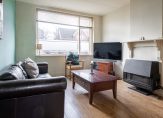 In het midden van de woning komt u binnen in de hal. Hierbij kunt u aan de rechterzijde naar de slaap-/studeerkamer van afgerond 7 m². Deze is nu in gebruik als slaapkamer, maar zou ook goed gebruikt kunnen worden als studeer- of hobbyruimte. Deze kamer heeft een vrij uitzicht op de voorgelegen Thorbeckestraat.