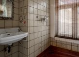 De badkamer is afgewerkt in lichte kleurstelling en beschikt over douchevoorziening evenals een wastafel.