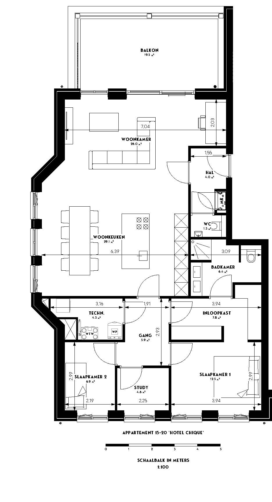 * Het appartement heeft de mogelijkheid tot een indelingsvariant: Hotel chique