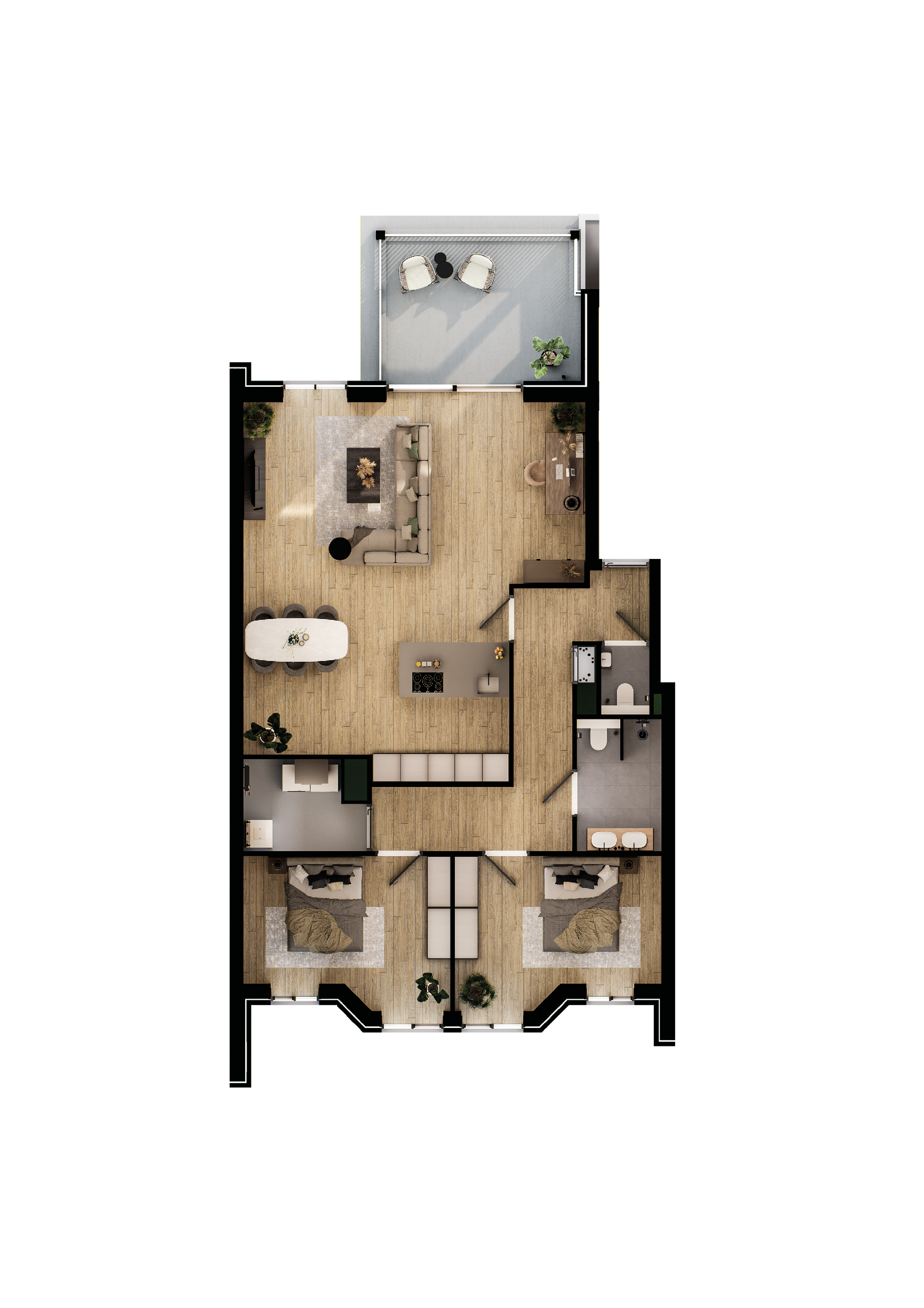 * Het appartement heeft de mogelijkheid tot een indelingsvariant: Hotel chique