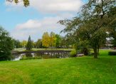 De ruime en lichte woonkamer van circa 35 m² is voorzien van een nette laminaatvloer en grote raampartijen die zorgen voor volop daglicht en een prachtig uitzicht over het omliggende groen en de vijver. Aan de zijkant zorgt een stijlvolle erker voor een sfeervolle zithoek met een plezierige uitkijk – dé ideale plek om te ontspannen en te genieten van het levendige uitzicht op het winkelcentrum.