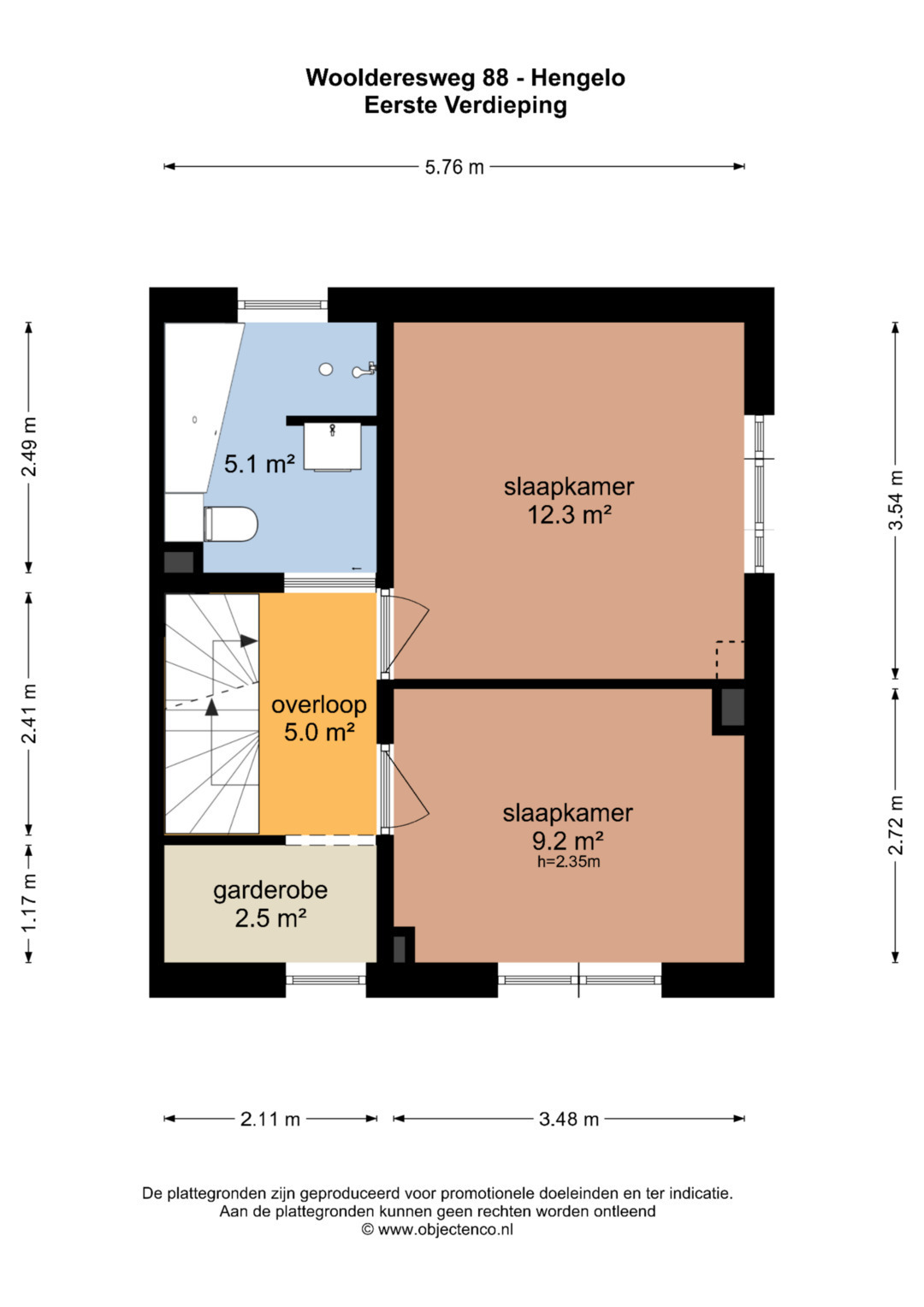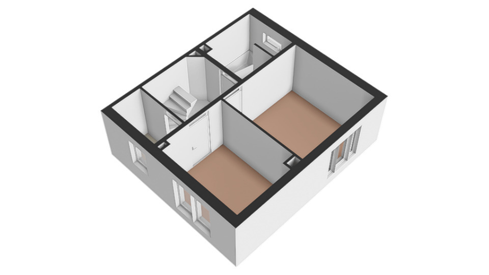 Op de eerste verdieping bevinden zich twee comfortabele slaapkamers van 12 en 9 m². Beide kamers zijn voorzien van een moderne laminaatvloer, waarbij één slaapkamer bovendien beschikt over praktische vaste kastruimte. Aan de voorzijde bevindt zich daarnaast nog een extra kamer van ca. 2,5 m², die thans in gebruik is als garderobekast. Met een knusse afmeting biedt deze kamer volop mogelijkheden, van een gezellige kinderkamer tot een compacte thuiswerkplek.