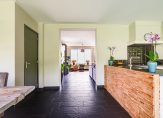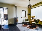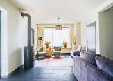 De living van maar liefst 30 m² is voorzien van een plavuizen vloer met comfortabele gasgestookte vloerverwarming. De warme en gezellige sfeer wordt versterkt door de centraal geplaatste houtkachel, die zorgt voor een behaaglijk gevoel op koude winteravonden.