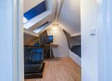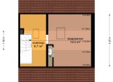 Via een vaste trap is de tweede verdieping bereikbaar. Hier bevindt zich een royale slaapkamer van ca. 14 m², voorzien van dakvensters die zorgen voor een aangename lichtinval. Daarnaast is er praktische bergruimte achter de knieschotten. Achter een vaste kast is de opstelplaats van de Cv-ketel netjes weggewerkt.