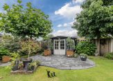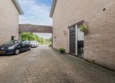 De verzorgde achtertuin ligt op het noordwesten en beschikt over een royale overkapping, sierbestrating, borders met beplanting en een gazon. Verder staat er achterop het perceel een houten tuinhuis met terras. Aan de voorzijde is voldoende ruimte voor het parkeren van meerdere auto’s op eigen terrein.