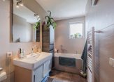 Op de eerste verdieping de overloop, 3 slaapkamers en een geheel betegelde badkamer met ligbad, inloopdouche, 2e toilet en wastafel.