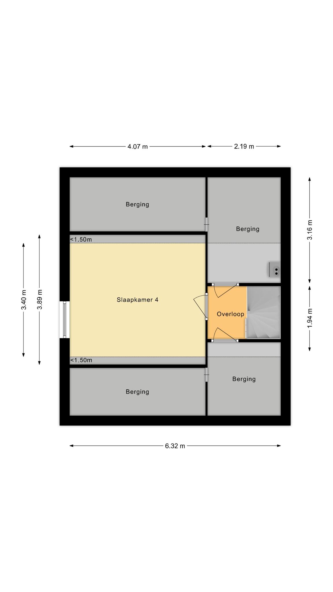 Op de zolder, welke bereikbaar is via een vaste trap, wederom een overloop met bergruimte en de vierde slaapkamer.