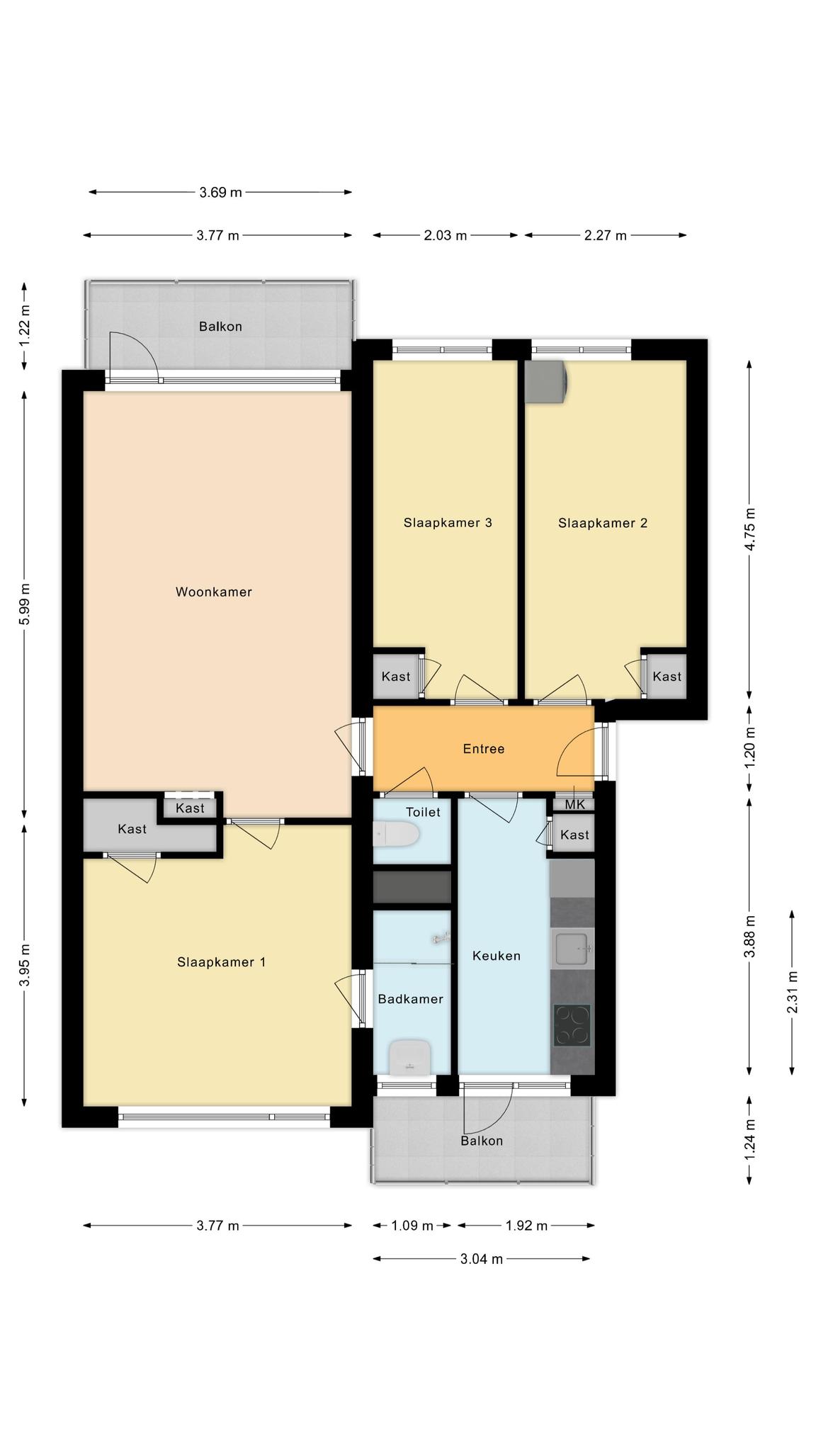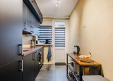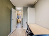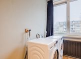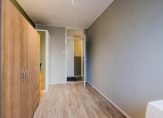 Via de centrale hal van het complex bereik je de woning op de eerste verdieping. Bij binnenkomst vind je aan de rechterzijde twee slaapkamers. Verder bevindt zich in de hal de meterkast, een apart toilet en toegang tot de keuken met een keukenblok uit 2022 voorzien van diverse inbouwapparatuur en toegang tot het eerste balkon (oosten).