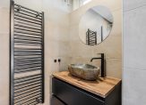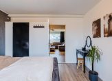 Aan het einde van de hal kom je in de lichte woonkamer met toegang tot het tweede balkon (westen) waar je heerlijk van de avondzon kunt genieten. Achter de woonkamer bevindt zich de hoofdslaapkamer met de badkamer (2022), voorzien van een wastafelmeubel met waskom en de douchehoek.