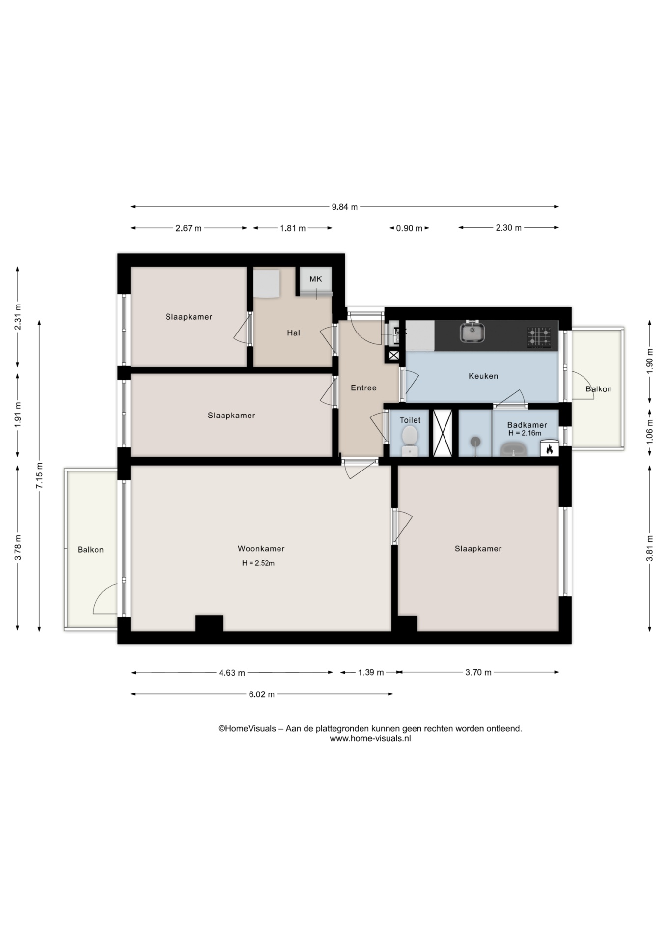 * Twee balkons (oost en west);