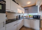 Hal/entree met bijkeuken, provisiekast, toilet, woonkamer, halfopen keuken met moderne keukeninrichting (2023) in lichtekleurstelling met inbouwapparatuur. De gehele begane grond is keurig afgewerkt met laminaat.