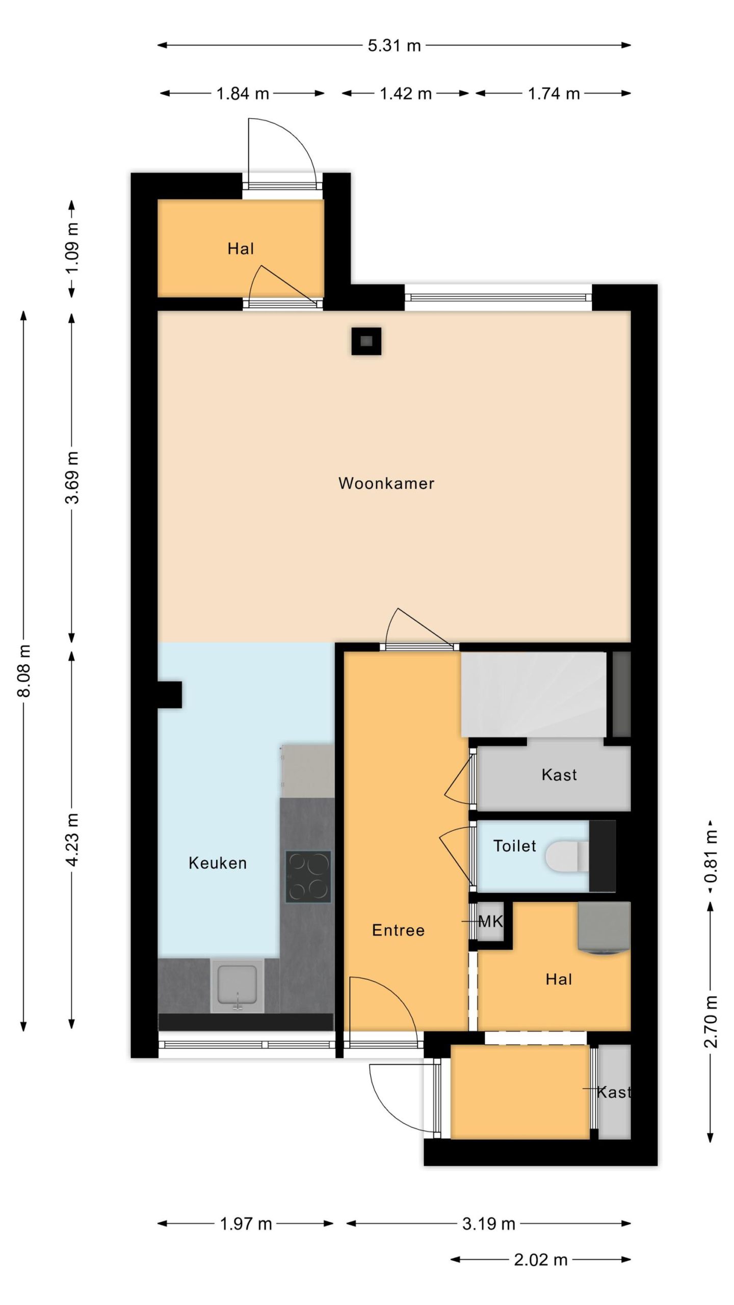 De woning is gelegen in de woonwijk ‘Wolfsbos’, op loopafstand van het winkelcentrum. Qua bereikbaarheid zit je hier ook goed: je bent zo op de A28 en de A37. Reis je met het openbaar vervoer? Het NS-station van Hoogeveen biedt directe verbindingen naar zowel Zwolle als Groningen. Hoogeveen heeft meerdere basisscholen, middelbare scholen en zelfs een mbo-school, dus aan onderwijsvoorzieningen geen gebrek. Daarnaast telt Hoogeveen een tal van sportfaciliteiten.