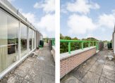 Het ruime dakterras van 68 m² strekt zich uit over de volledige zijkant van de woning. Vanaf hier heeft u een prachtig, vrij uitzicht over het Steenbergerpark. Een ideale plek om in alle rust van de buitenlucht te genieten.