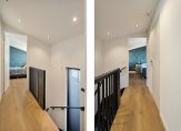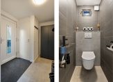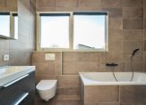 Op de eerste verdieping is de overloop met toegang tot de andere twee slaapkamers (12,2 m² en 10,5 m²). De moderne badkamer uit 2021 is compleet uitgerust met een ligbad, inloopdouche, wastafel met meubel en een hangtoilet. De badkamer is volledig voorzien van elektrische vloerverwarming.
