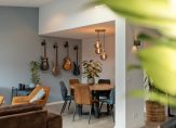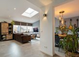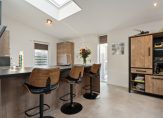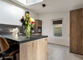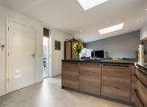 De woonkamer (34 m²) is licht en prettig van formaat en staat in open verbinding met de keuken die geplaatst is in 2021. De open keuken (11 m²) is netjes uitgevoerd en voorzien van diverse inbouwapparatuur, waaronder een vaatwasser, inductiekookplaat, combi-oven en koel-vriescombinatie. In het woon-/keukengedeelte is bovendien een airco aanwezig, wat zorgt voor extra comfort in alle seizoenen. Aansluitend vind je de bijkeuken met de cv-installatie (Vaillant 2004) en de witgoedaansluiting.