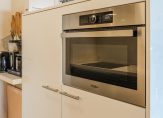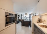 Via de hoofdentree met intercom installatie en lift bereik je de vierde woonlaag. Daar stap je het appartement vanaf de galerij binnen via de hal, die toegang biedt tot de zonnige woonkamer. Vanuit de woonkamer heb je direct toegang tot het balkon waar je heerlijk kunt genieten van het uitzicht in de zon onder het genot van een borrel met vrienden of familie. De open keuken is in 2011 vernieuwd, voorzien van diverse inbouwapparatuur en heeft tevens een aparte berging/bijkeuken waar zich ook de aansluiting voor de wasmachine bevindt.