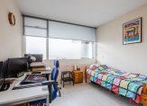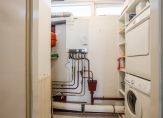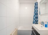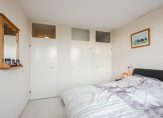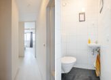 Vanuit de woonkamer komen we in de hal waar 2 slaapkamers te vinden zijn. De hoofdslaapkamer is voorzien van twee inbouwkasten. De tweede kamer is perfect voor bijvoorbeeld een kantoor of logeerkamer. Ook bevinden zich hier de badkamer met ligbad en wastafelmeubel en is er een aparte toiletruimte.