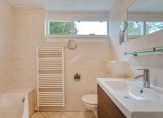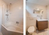 Op de eerste verdieping de overloop, drie slaapkamers (18, 15 en 10 m²) waarvan twee met inbouwkasten. Verder op deze verdieping de badkamer voorzien van 2e toilet, ligbad met douche, designradiator en wastafelmeubel.