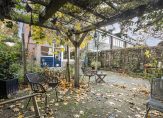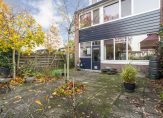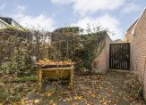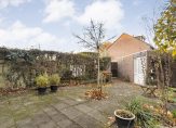 De achtertuin is op het oosten gelegen, achterom bereikbaar en biedt veel privacy. De tuin is ingericht met sierbestrating, een terras, veel groen en grens afscheidende beplanting. Doordat de woning de laatste in de straat is heb je een mooie vrije ligging met uitzicht op openbaar groen en een extra breed perceel. Achter op de kavel vind je de vrijstaande stenen garage waar je o.a. de fiets of auto kunt stallen. De auto kun je tevens achter de woning parkeren.
